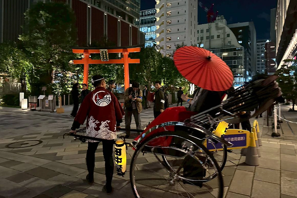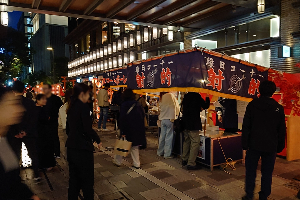 パーティー会場である日本橋仲通りには縁日や人力車等も用意された楽しい雰囲気の中、地元の店舗の協力のもと、ウェルカムドリンクや軽食が提供されました。
