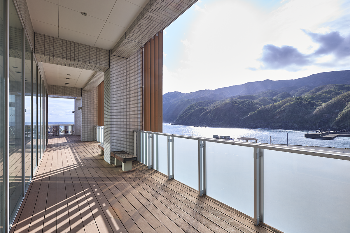 八丈島神湊港船客待合所は、東京都・八丈島の玄関口、神湊港(かみなとこう)に佇むスタイリッシュな交流施設。青く澄んだ海と、雄大な八丈富士を望む絶景を楽しみながら自然を満喫する様々なイベントが開催できます。